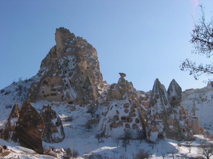 * We arrive to Uchisar. We visit some of the pigeon houses and the ancient cave houses .