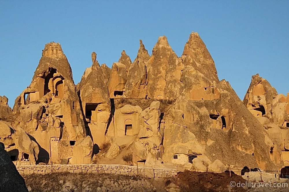 We see the famous fairy-chimneys (mushroom like natural rock formations ) and some of the monks cave rooms where the monks retreated themselves n the middle age and walk to Cavusin Village